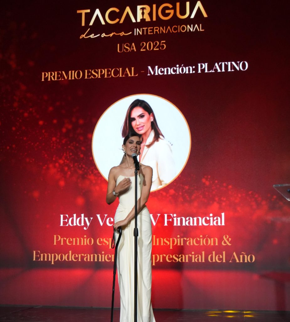 La reconocida conferencista internacional Eddy Vera fue galardonada este domingo 12 de octubre con el “Premio Especial Inspiración & Empoderamiento Empresarial”, durante la prestigiosa gala de los Premios Tacarigua de Oro USA 2025, celebrada en los estudios de ARPI Group en Miami Lakes.