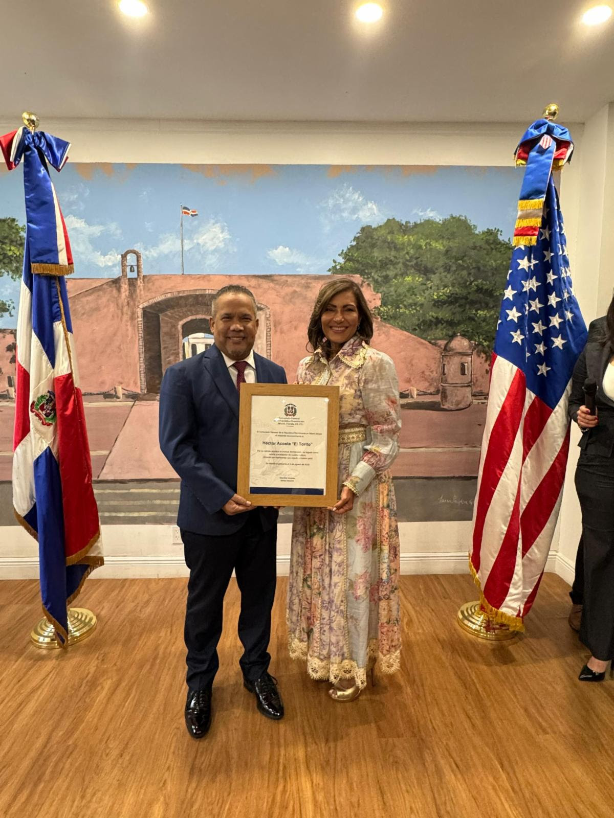 “El Torito no solo representa el talento dominicano, sino también el esfuerzo, la perseverancia y la pasión con la que se construye una carrera con propósito. Este reconocimiento simboliza el respeto y el cariño de toda una nación que se siente orgullosa de su hijo,” expresó la Cónsul al hacer entrega del galardón.